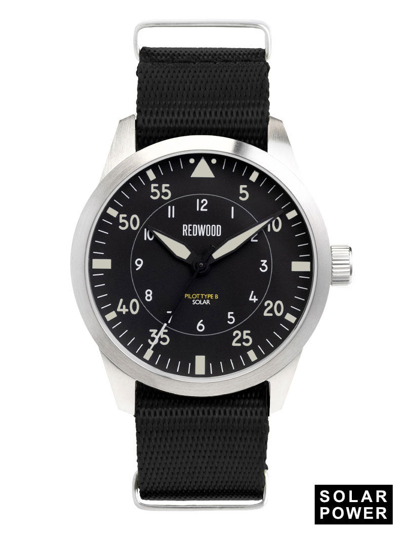 Our inspiration for the Redwood Pilot Type B watch would be supplied to fighter pilots during WW2 and achieve legendary status. Reinterpreted with modern dimensions and updated technology, it is ready for anything you throw at it. Even though most of us will never intercept enemy aircraft mid-air, it is impressive to know the Type B has a solid historical background and the means to back its looks.