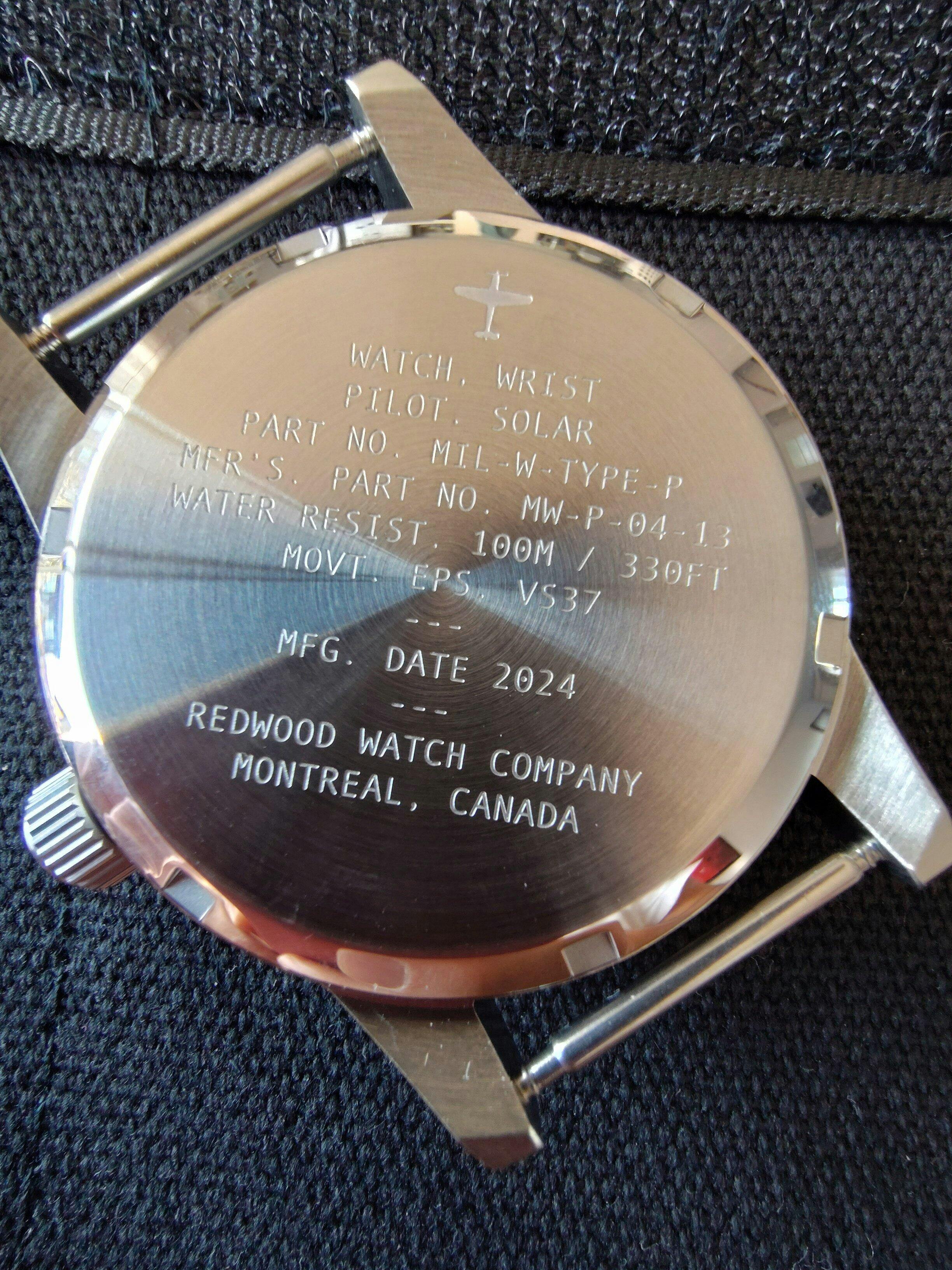 The screw-down caseback of the Redwood Pilot A-13 might appear cryptic for the uninitiated with several lines of coded text engraved into the solid stainless steel piece. In a tip of the hat to government-contract timepieces, the caseback features important information about the watch including model number, type of movement, water resistance rating, date of manufacture as well as manufacturer contact information.
